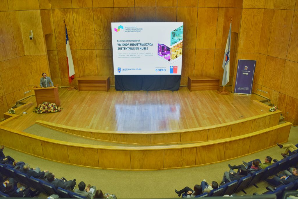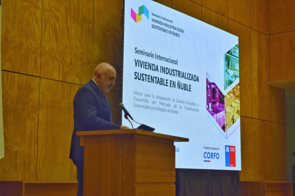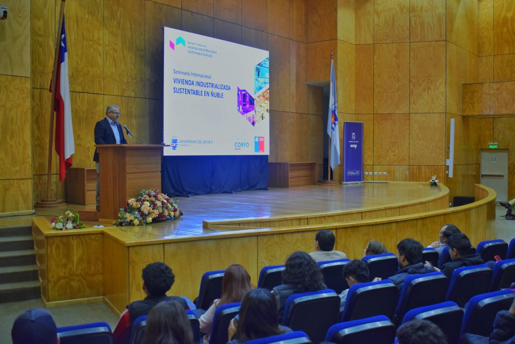 Con la presencia del rector de la Universidad del Bío-Bío, Benito Umaña y autoridades locales se realizó, este miércoles 3 y jueves 4 de abril de 2024, en el Campus Fernando May, el seminario internacional “Vivienda Industrializada Sustentable: Motor para la Adaptación al Cambio Climático y Desarrollo del Mercado de la Construcción Sustentable en la Región de Ñuble”, una iniciativa patrocinada por CORFO-Ñuble a través de los fondos Viraliza – Eventos de Alta Convocatoria con foco en ecosistemas regionales.