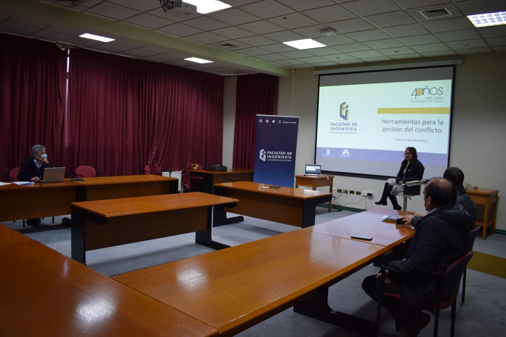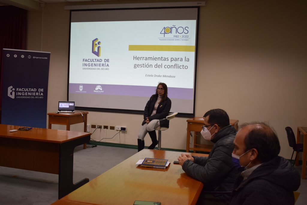 En el transcurso de este último tiempo, han surgido diversos conflictos, ya sea entre estudiantes y/o apoderados, los cuales han impactado significativamente en la forma en que los individuos se relacionan y conviven consigo mismos y entre pares. En este contexto es que el taller “Herramientas para la gestión del conflicto” de Estela Drake Mendoza, Psicóloga de la Facultad de Ingeniería de la Universidad del Bío-Bío, se llevó a cabo durante la jornada del 22 de junio, en la Sala Multiuso del Edificio Gantes.