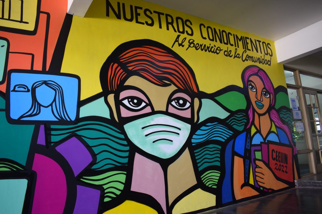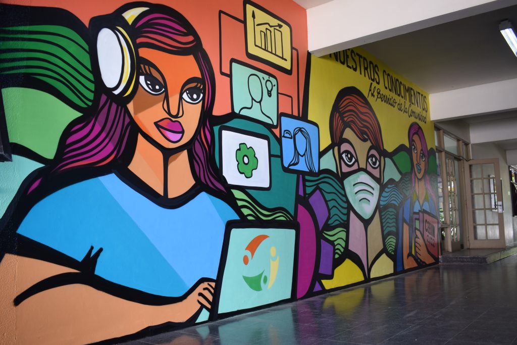 El destacado muralista nacional, Ernesto Pititore, quien ha realizado intervenciones artísticas en diversas Casas de Estudios, fue el encargado de darle vida a esta obra.