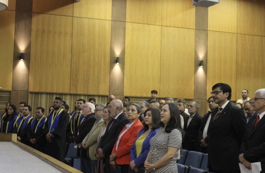 Ceremonia precedida el rector, Benito Umaña, y en compañía de la Vicerrectora de Investigación y Postgrado, Dra. Angélica Caro Gutiérrez; Vicerrector de Asuntos Económicos, Dr. Mauricio Gutiérrez Urzúa; Directora de Postgrado, Dra. Carolina Luengo Martínez; Dr. Patricio Álvarez Mendoza, Decano de la Facultad de Ingeniería; Dra. Jessica Fuentealba Quilodrán, Decana(s) y Secretaria Académica de la Facultad de Arquitectura, Construcción y Diseño; Dra. Grecia Avilés, Directora de Docencia; Dra. Elizabeth Grandón Toledo, Decana de la Facultad de Ciencias Empresariales; Dr. Juan Bobenrieth Hochfärber, Decano de la Facultad de Ciencias; Directoras, Directores Generales, Directoras, Directores de Programas de Magíster y de Doctorado, académicas, académicos, familiares e invitados.
