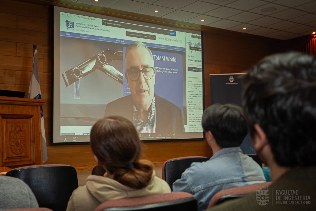 Durante la charla, el Dr. Kecskemethy abordó los orígenes históricos de IFToMM, sus principales áreas de acción, y las proyecciones de esta red global que conecta a expertos en mecánica, robótica e ingeniería de todo el mundo. Se enfatizó el rol clave que juega la colaboración internacional en la generación de conocimiento y el impulso de tecnologías emergentes con alto impacto en la sociedad.