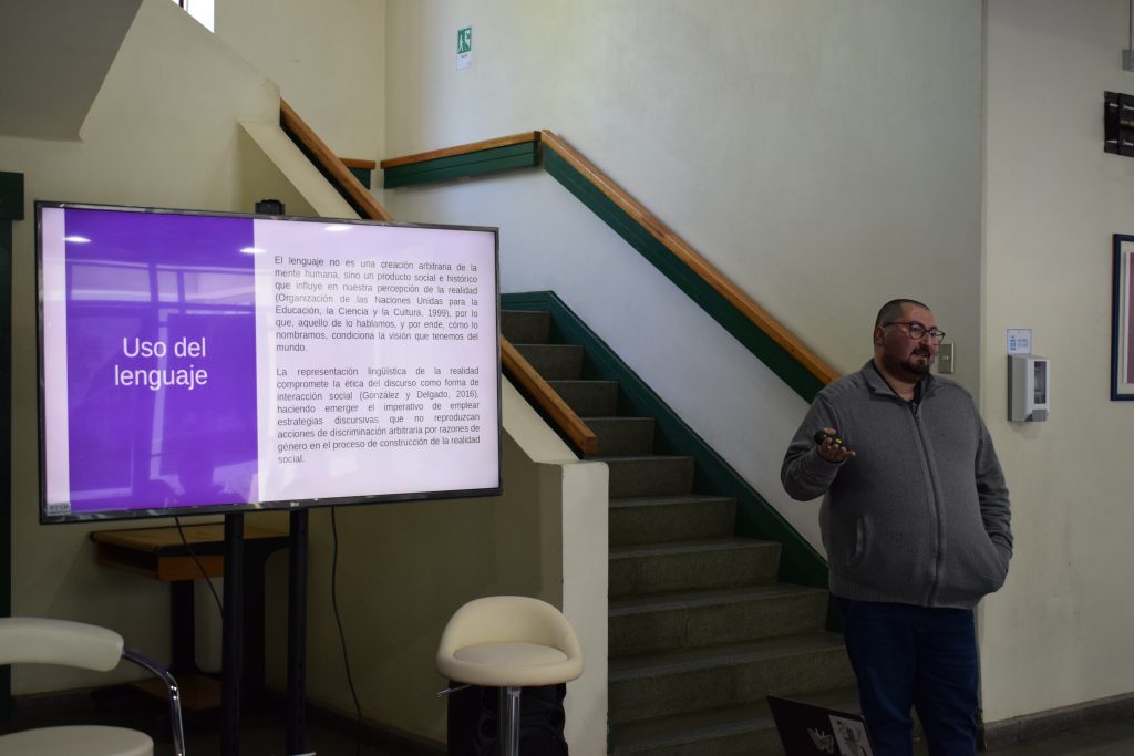 Los exponentes de la Unidad DIRGEGEN de la Universidad del Bío-Bío: Engel Arias, socióloga encargada de seguimiento de políticas y Alen Alegría, asesor jurídico, expusieron sobre la labor de la Dirección, sus principales líneas de acción, recursos, actividades y el lenguaje no sexista.