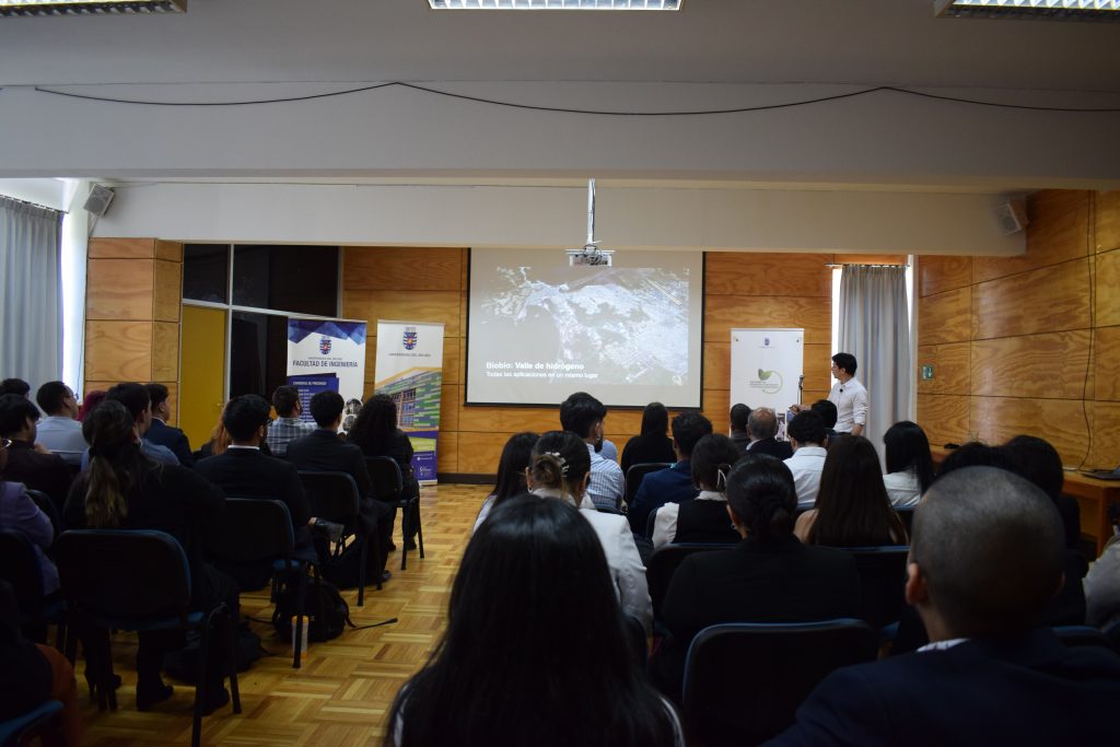 Le subsiguió el ingeniero Javier Soubelet, Gerente del Programa Estratégico Regional Hidrógeno Verde Biobío, quien se refirió a la “Hoja de Ruta estratégica para la descarbonización de la matriz productiva del Biobío mediante la introducción de hidrógeno verde y sus derivados”, donde realzó las aplicaciones del hidrógeno verde, el contexto competitivo de la región, los principales hitos, los objetivos y estrategias en las que se rigen.
