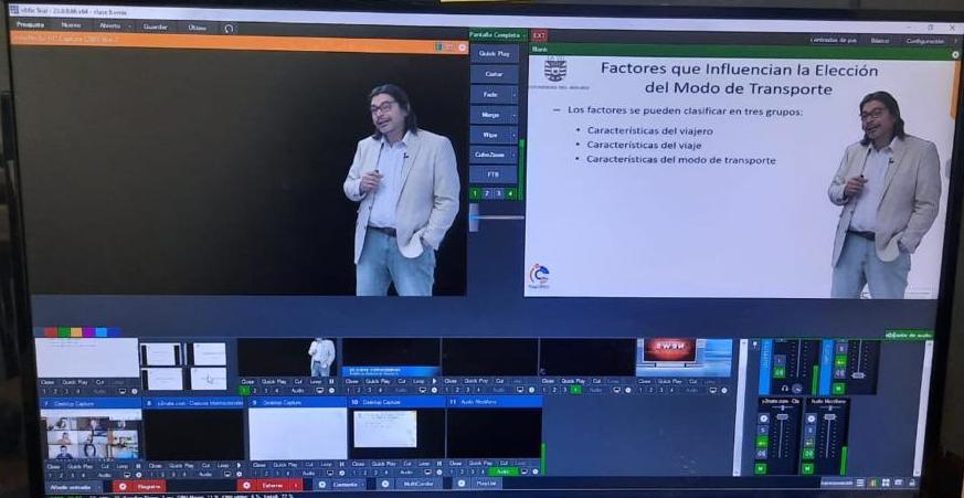 El montaje del set virtual, la coordinación con los recursos informáticos y transmisión, estuvo a cargo de los funcionarios del DICA, Juan Carlos Montero y Víctor Vejar, quienes pusieron al aire sesiones de la asignatura de Análisis de Sistemas de Transporte, a cargo del propio Dr. Patricio Álvarez.
