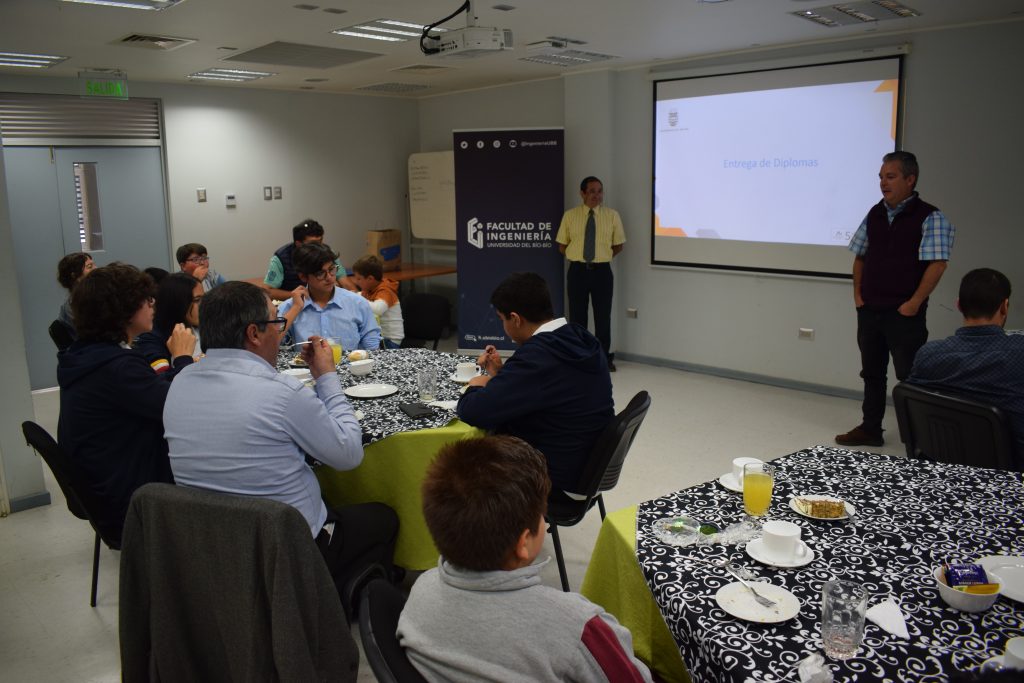 Durante la comida, el académico Luis Vera, realizó una presentación sobre los resultados del taller. Además, se abrió un círculo de conversación para comentar la experiencia de los docentes y alumnos con esta iniciativa que busca interesar a los niños y niñas en la robótica, la ciencia y la tecnología.
