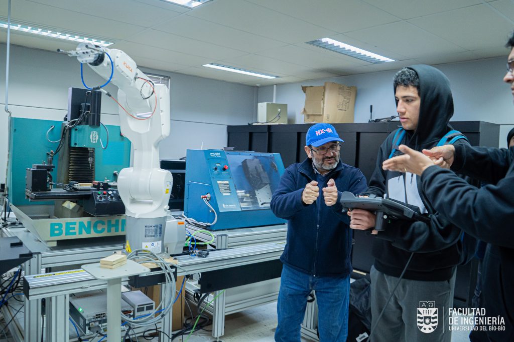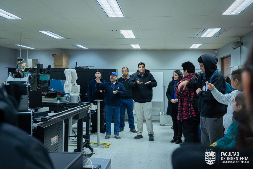 Después, los invitados visitaron el Laboratorio de Sistemas Automatizados de Producción CIM UBB, donde su ingeniero a cargo, Sr. Luis Vera, les contó acerca del propósito de dicho espacio y guió una actividad de utilización de un brazo robótico, donde alumnos tuvieron la oportunidad de manipular dicho aparato. También visitaron el FabLab de la Facultad de Ingeniería, a cargo del Ingeniero Daniel Aguayo, donde conocieron acerca de nuestras capacidades instaladas en impresión 3D y corte láser.