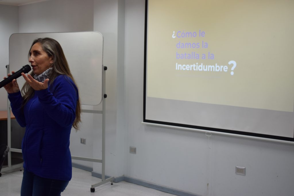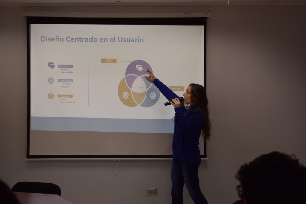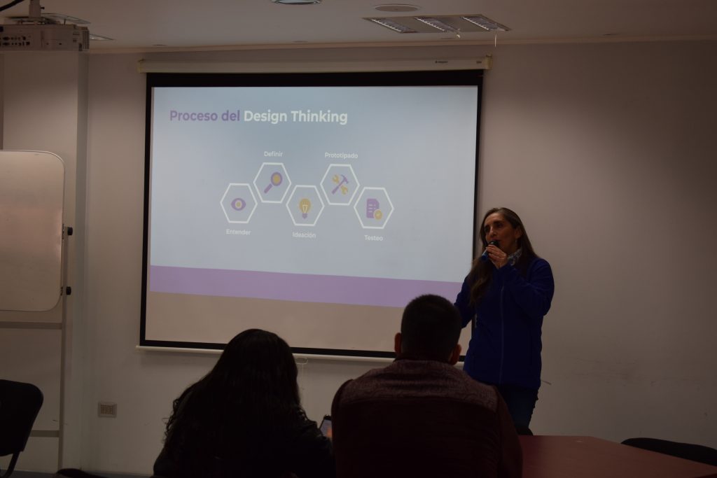 En este contexto, Paola Otárola, Profesional con sólidos conocimientos en Fomento Productivo, Proyectos de Innovación, Formación y Mentoría de Emprendedores, realizó primera charla de la ruta titulada “Design Thinking”, donde manifestó la importancia del pensamiento de diseño en los futuros emprendedores; el desarrollo centrado en el usuario; el segmento de clientes; y el proceso metodológico de empatizar. Durante este módulo, se llevaron a cabo actividades lúdicas tales como definición de desafíos, perfil personal y mapa de empatía.