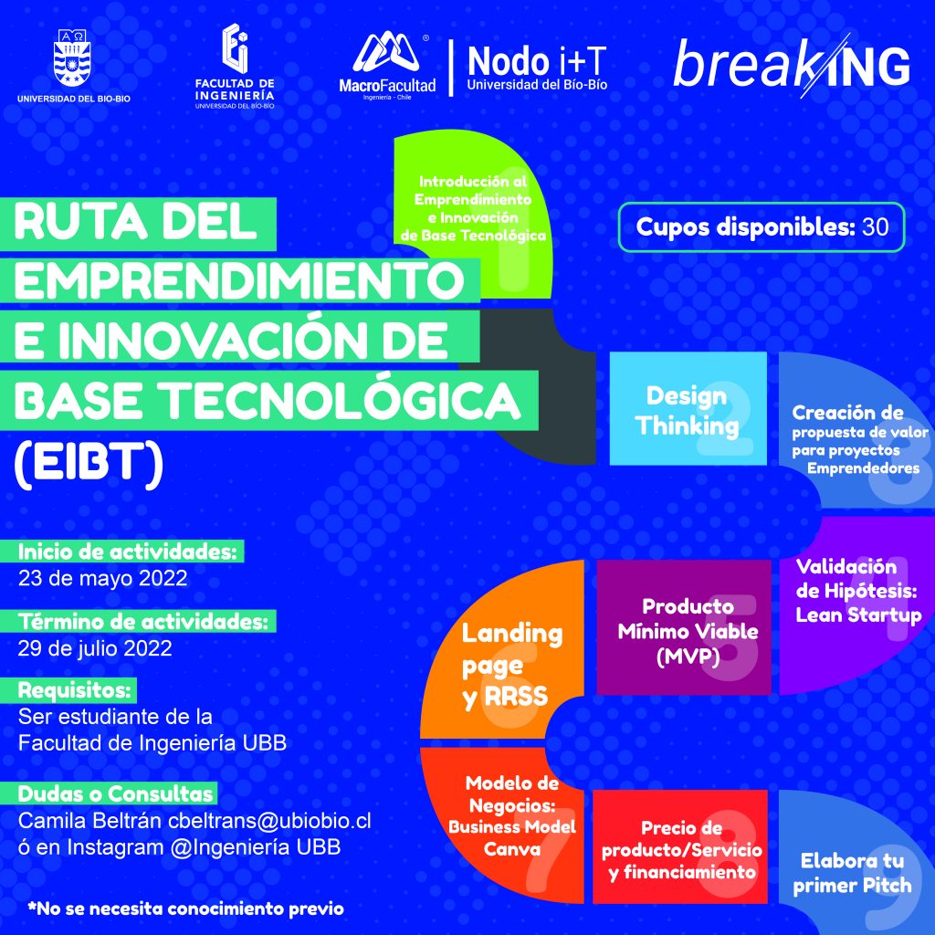 Nacido bajo el alero del programa breakING del Nodo i+T de la MacroFacultad UBB, la Ruta del Emprendimiento e Innovación de Base Tecnológica busca que el concepto de innovación sea visto como una herramienta complementaria al aprendizaje de los y las estudiantes.