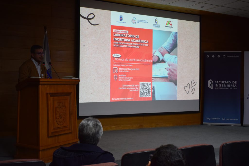 Juan Pablo Amaya González, Doctor en Literatura Latinoamericana y expositor de la actividad -en compañía de Gabriel Cabezas Rivera, Master in Teaching English as a Foreign Language-, señala que la intención del proyecto se centra en la ejecución de charlas y/o talleres que aborden algunos aspectos de los procesos de escritura académica. “El principal objetivo del Laboratorio de Escritura es acompañar a los y las estudiantes de ingeniería de la Universidad del Bío-Bío, en los procesos de escritura y defensa de sus trabajos finales de grado con asistencia técnica en alfabetización académica y competencia lingüística en inglés”.