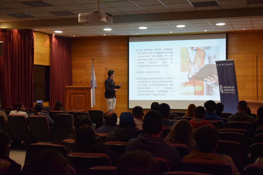 El pasado 22 de octubre, cerca de 50 estudiantes se reunieron en el auditorio Hermann Gamm del edificio Gantes a escuchar la charla dictada por el Psicólogo Laboral, Diego Concha, quien desglosó los distintos tipos de metodologías utilizadas para los procesos de selección laboral y la atracción de talento en las organizaciones.