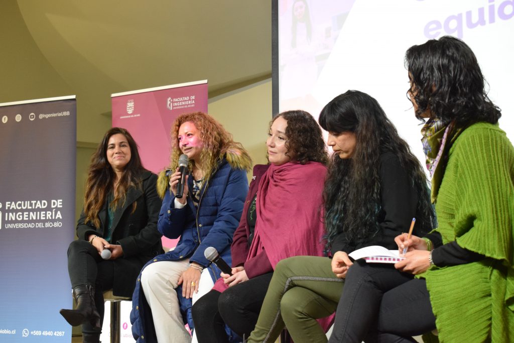 Posteriormente, se realizó un panel de conversación, dirigido por Jessica Jerez, profesional de la Facultad de Ingeniería, el cual contó con la participación de la académica de la Facultad de Ingeniería, Paola Bustos; la ingeniera Marcia Carrasco, fundadora de la Red de Ingenieras del Colegio de Ingenieros; Consuelo Fertilio, Directora de Mujeres Ingenieras de Chile y Karent Hermosilla quien había expuesto anteriormente.