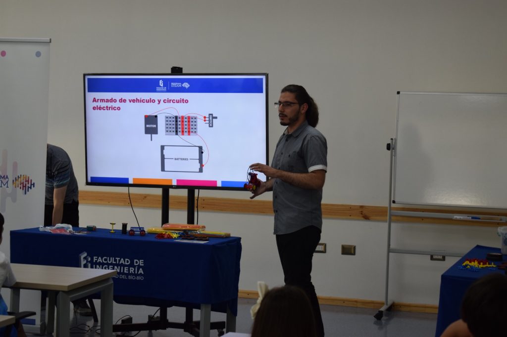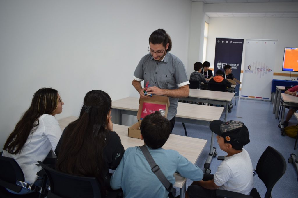 Matías Troncoso, Ingeniero de Proyectos del Programa y profesional del Departamento de Ingeniería Mecánica de la casa de estudios, destacó el estudio dinámico como un medio más novedoso para los más pequeños. “Se trata de acercar conceptos que ellos ven en la teoría, en la pizarra, en un ámbito más entretenido, donde puedan jugar y a la vez aprender, siendo más ameno para todos”.