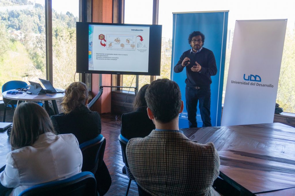 Al inicio del encuentro, las y los asistentes fueron saludados por la directora general de Relaciones Institucionales Mg. Nelly Gómez Fuentealba, y por el Dr. Luis Vicentela Gutiérrez, decano de la Facultad de Ciencias de la Salud, y María José Morgado, subdirectora de Vinculación y Operaciones de la Vicerrectoría de Investigación y Doctorados, de la UDD. La jornada prosiguió con la presentación de las capacidades de investigación de diversos laboratorios de nuestra Universidad, vinculados al ámbito que abarca el acuerdo interinstitucional: La Dra. Marcela Vidal Vega se refirió al PRODIMA-LAB y sus desarrollos en biomateriales para construcción sustentable, mientras que los Dres. Jorge Fernández González y Christopher Salvo Medalla expusieron sobre los laboratorios de Mecánica Computacional y de Materiales Avanzados, respectivamente. El Dr. Erik Baradit Allendes, en tanto, abordó las líneas en técnicas no destructivas para la evaluación de materiales.