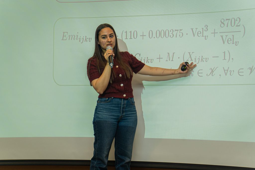 Por su parte, la estudiante de doctorado MSc. M. Victoria Gutiérrez-Padilla, de la Pontificia Universidad Católica de Valparaíso, expuso un modelo orientado a minimizar tiempos, distancias y emisiones de CO₂, aportando herramientas clave para una logística más eficiente y sustentable.
